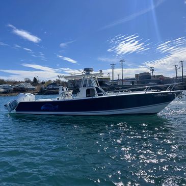 Step aboard Focus, our 32’ Regulator center console—fully rigged and ready for any fishing adventure the Northeast has to offer. Powered by twin 300hp Mercury Verados and featuring Sea Keeper Ride, she delivers a smooth, stable ride even in offshore conditions. Known for their legendary ride quality, superior construction, and offshore ca